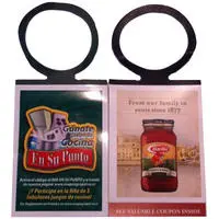 Often referred as a rubber bottle necker, the ElastiTag® (shown below) is actually latex-free unlike rubber and is largely popular in the industry. The elastomer base ensures that whatever the bottle necker is holding stays in place. The elastomer loop is remarkably strong and ensures durability in a busy setting like grocery stores or liquor stores. You can get the elastomer loop in a variety of colors to match your product and brand. Bottle neckers can also be printed on paper, vinyl, plastic and polypropylene. You can even request to custom produce it in any shape or size.