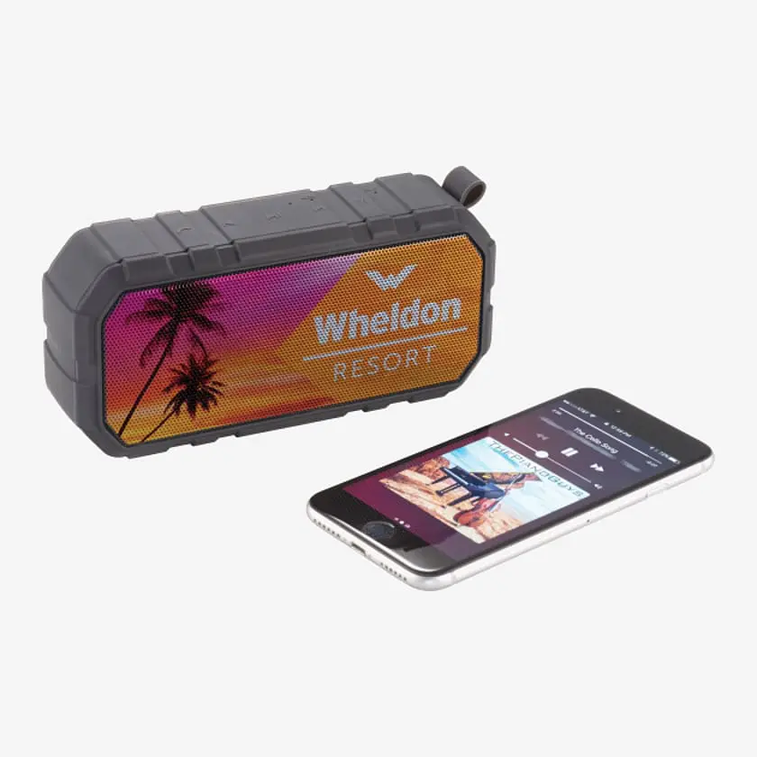 Along with great sound and four hours of playback, the Brick Bluetooth® Speaker has an IPX6 waterproof rating … just in case it accidentally takes a dip in the pool.